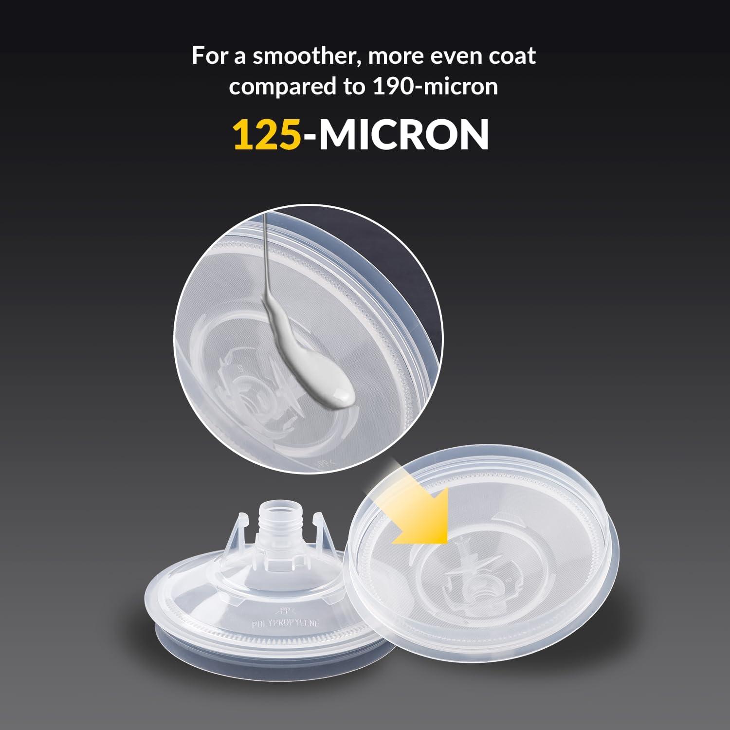 Fine Filtration: Use our automotive paint mixing cups with liners for a smoother, more even finish—our cup lids feature a built-in 125 micron filter, providing finer filtration than 190 micron filter. The disposable paint gun cups system is suitable for all types of paints, primers, epoxies, and commercial coatings.